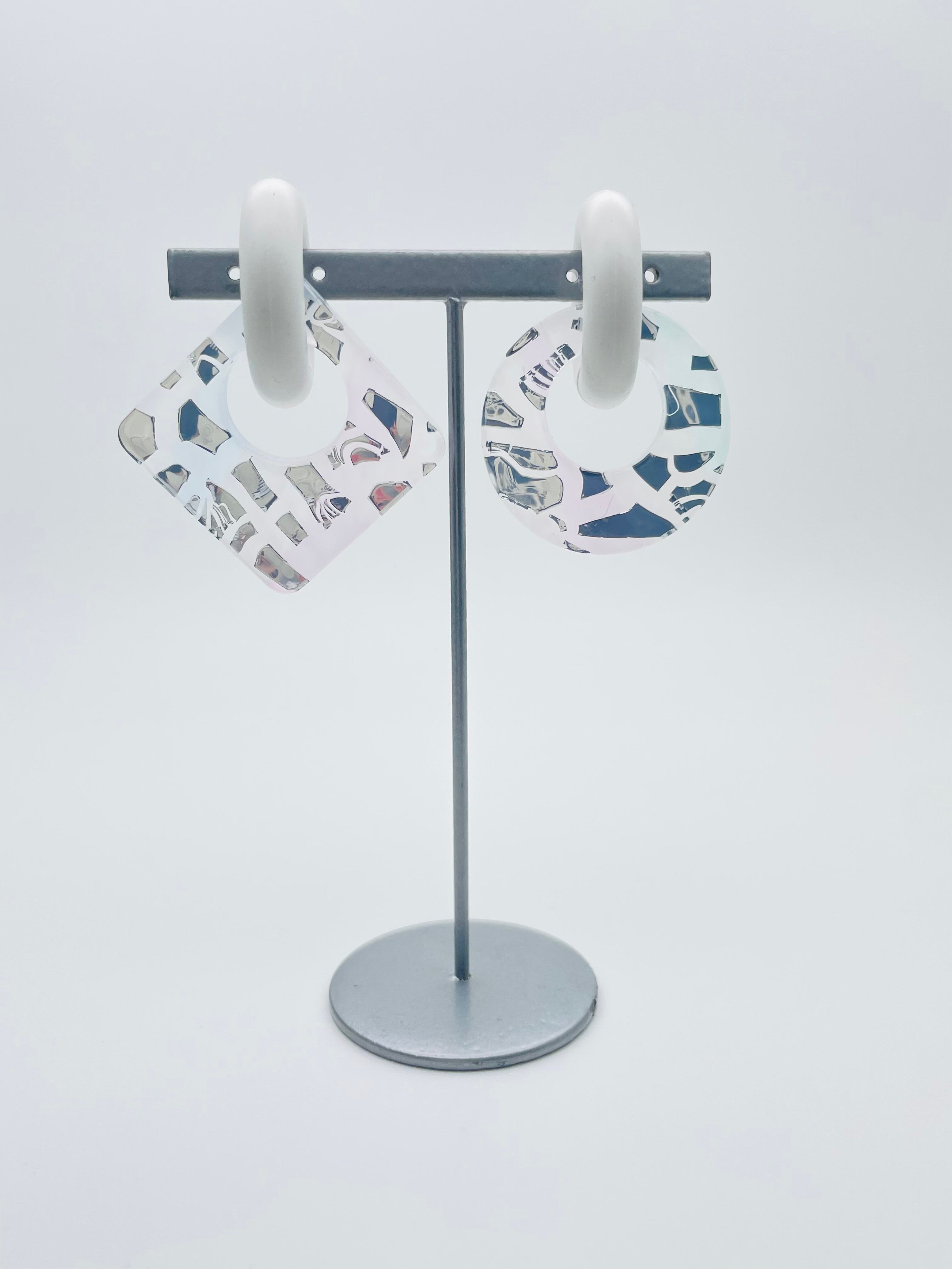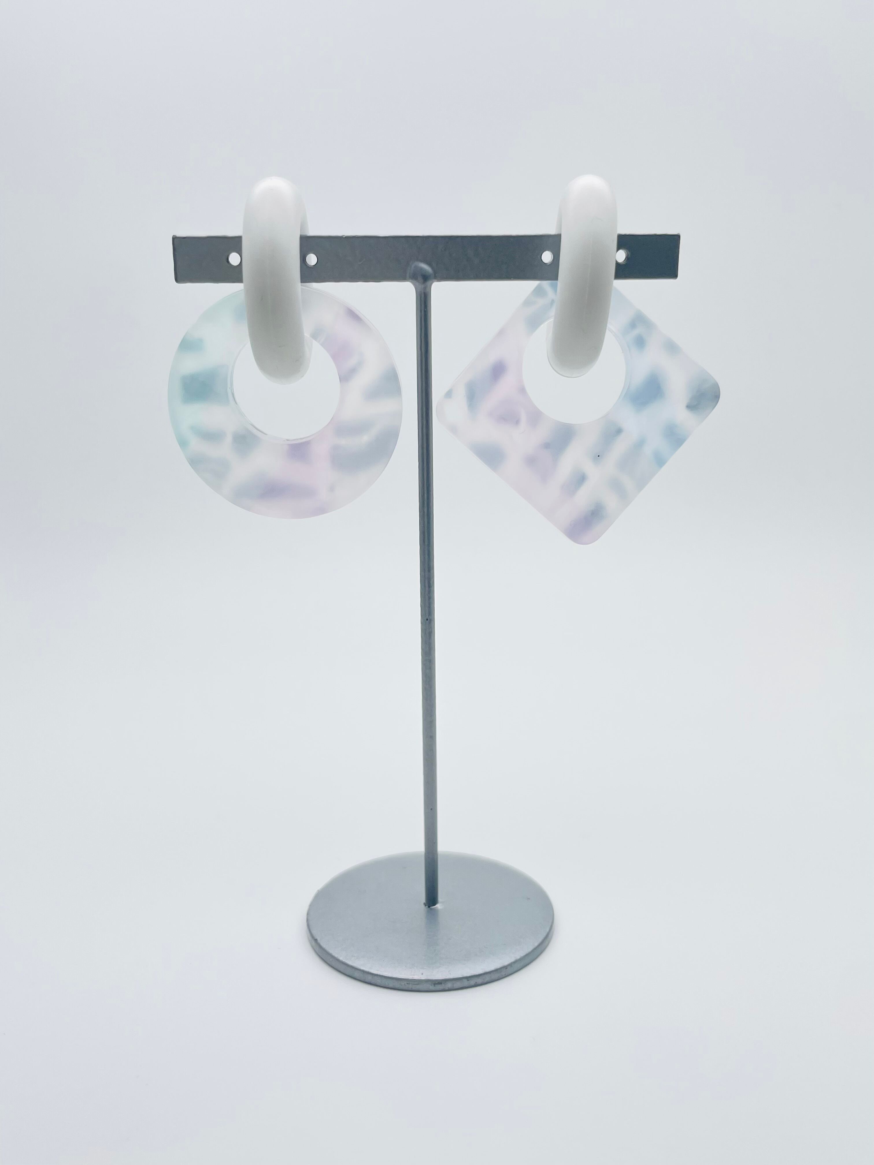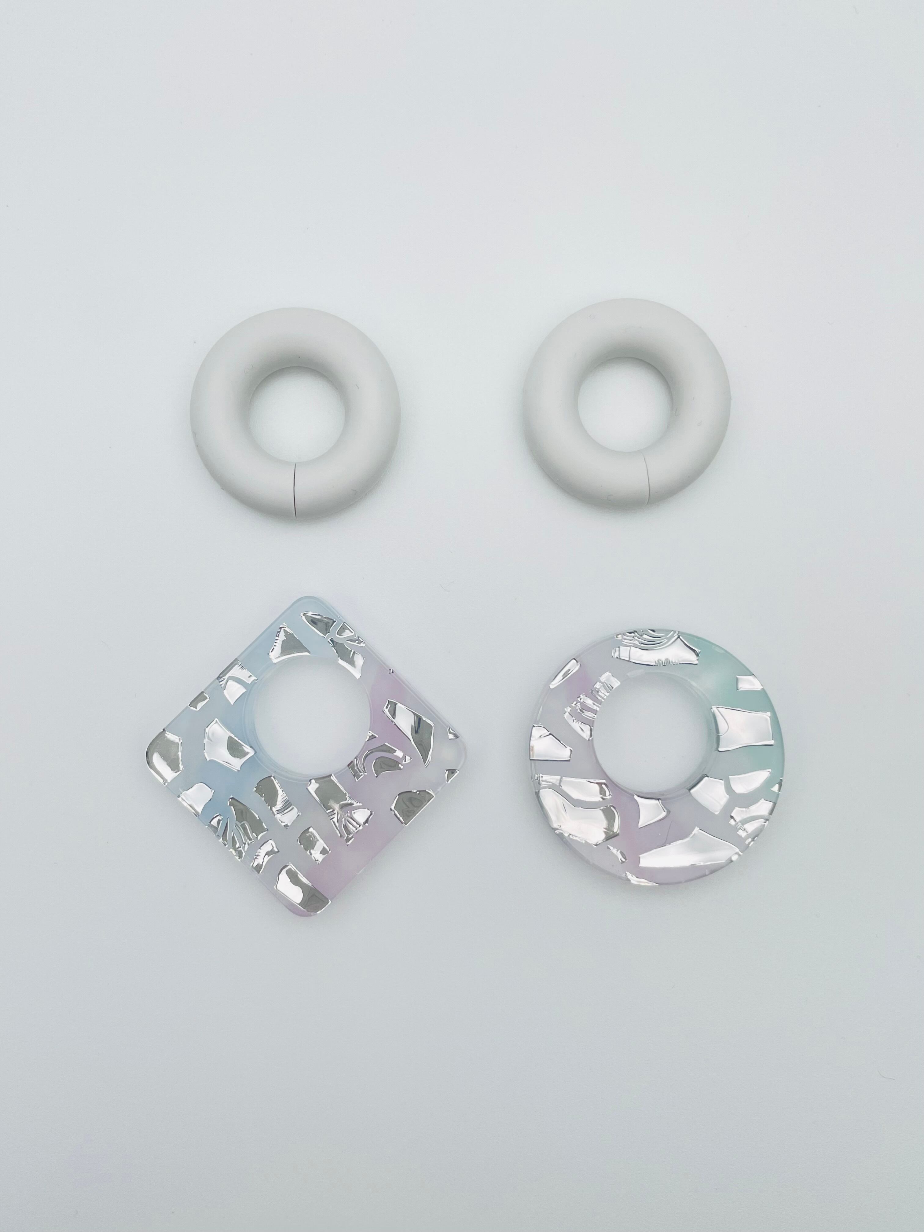 シャーベットカラーのアクリル端材と金属(メタル)調の廃材をミックスしたシリーズです。